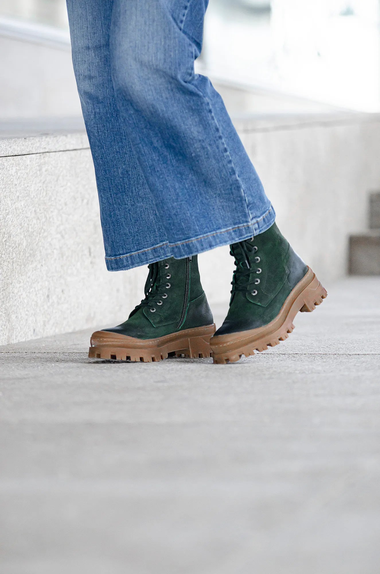 Our lace-up style Jenny is crafted from beautiful waxed suede without heavy metals(chrome-free), giving it a vintage look. The lining is made of wool felt to keep feet warm on cold days. For added comfort we have a removable latex footbed. The outsole is made in a lightweight TR material. There is a zipper on the inside of the boot, making it easier to put on and take off.