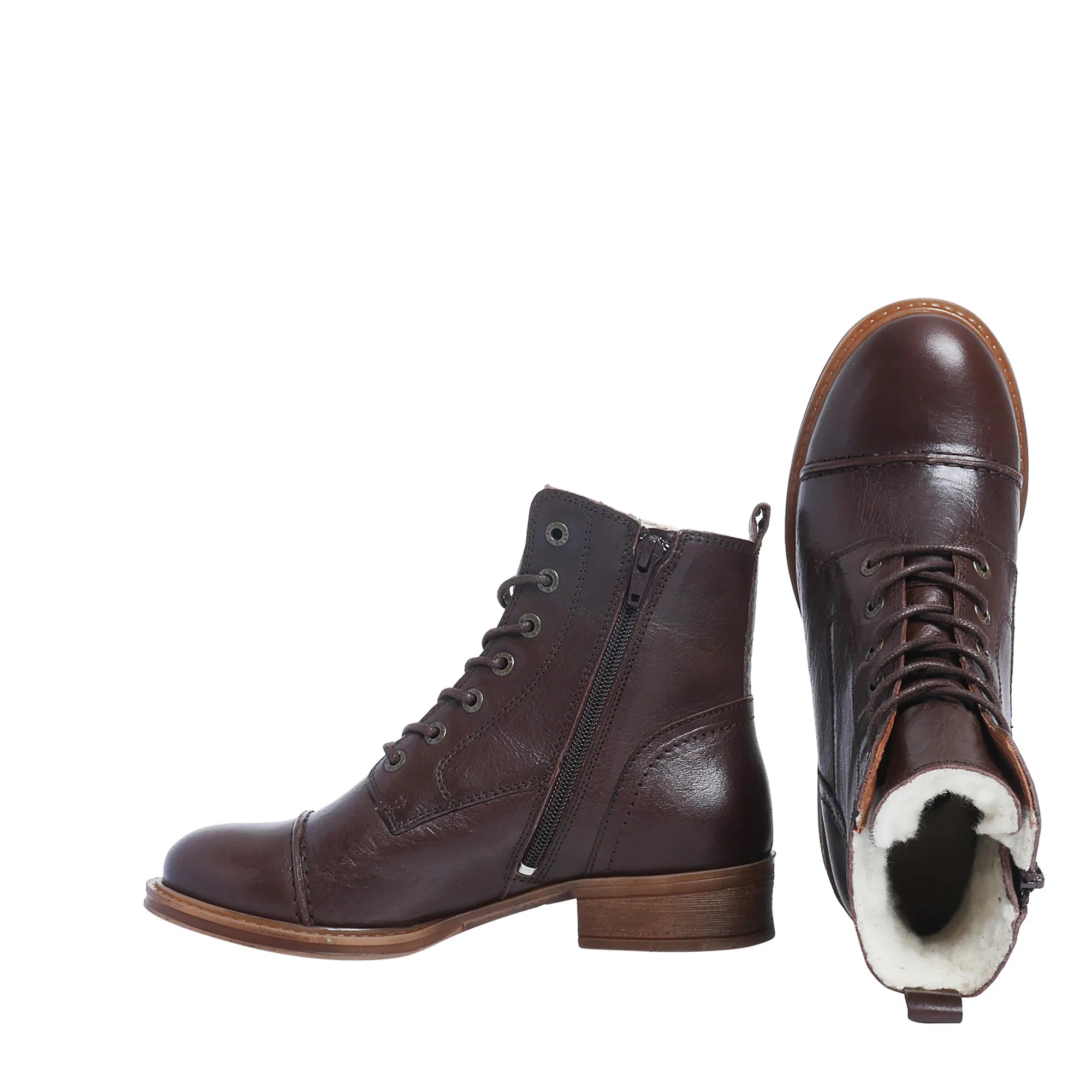 Our favorite, the Pandora leather boot—combining both laces and a zipper for effortless wear. Crafted from vegetable-tanned leather and lined with warm, cozy wool, it’s the ultimate choice for cold days. Embrace timeless style with this best-selling, sustainable piece of slow fashion. A must-have for your wardrobe!