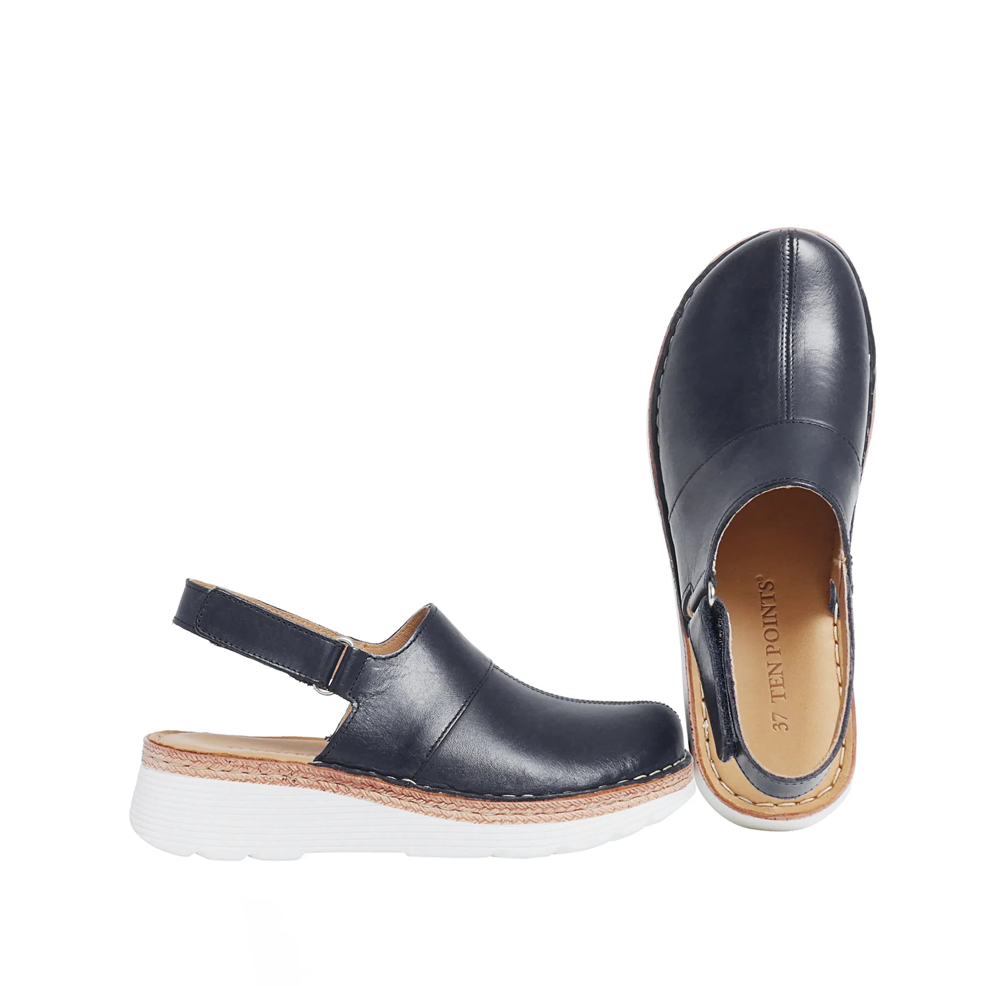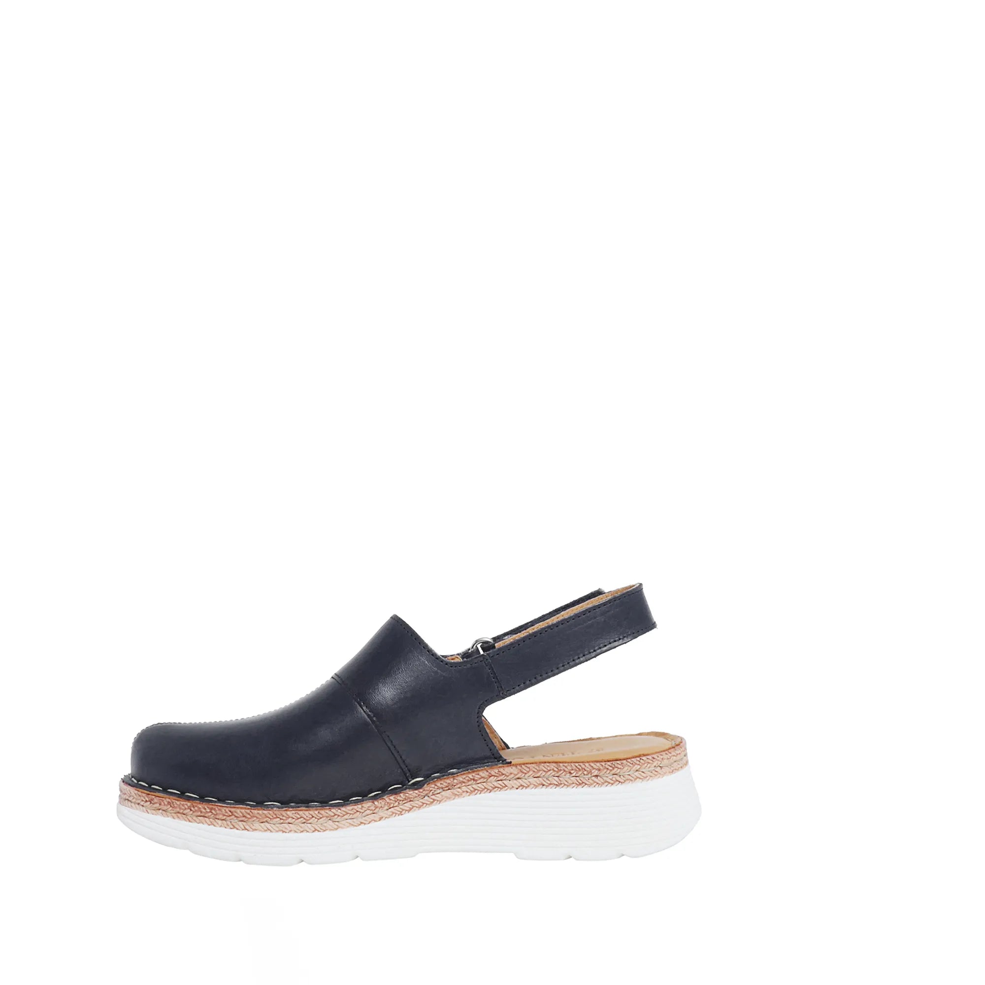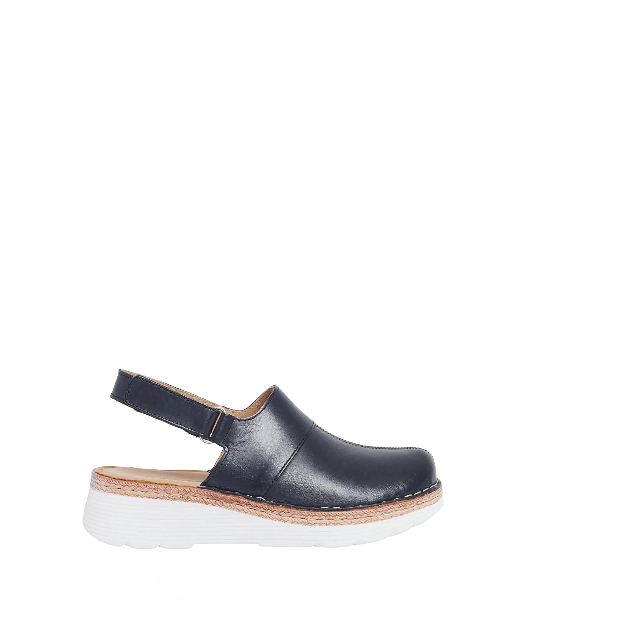 Maya 2 with the new outsole design, but still the same fitting and comfort as before only a new fresh look of the outsole. Here in a sandal version with closed toe and an adjustable velcro strap around the heel made in chrome-free brushed leather and with chrome free leather lining. The leather material of the upper is Gold rated by Leather Working Group