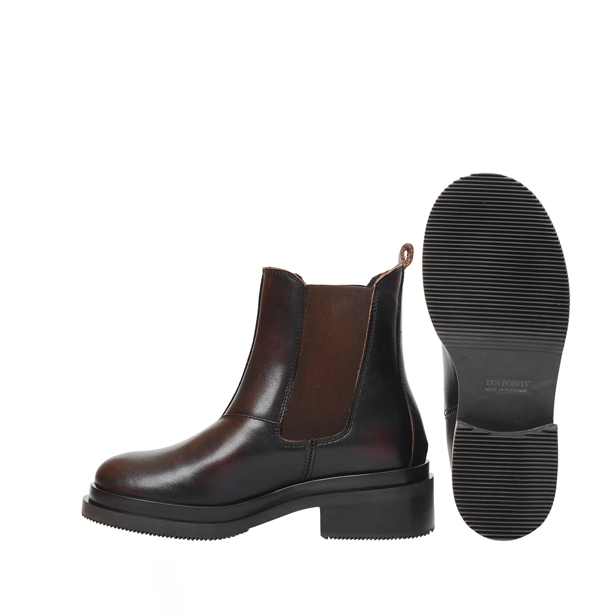 A sturdy yet elegant boot with a robust, heavy sole that keeps my feet well insulated from the cold ground. Compared to the Chelsea boot I also own, this one feels slightly shorter – possibly due to the differently shaped front. If in doubt, I’d recommend sizing up. There's plenty of room width-wise for the foot. I'm very happy with my second pair of Ten Points boots - always an excellent quality!