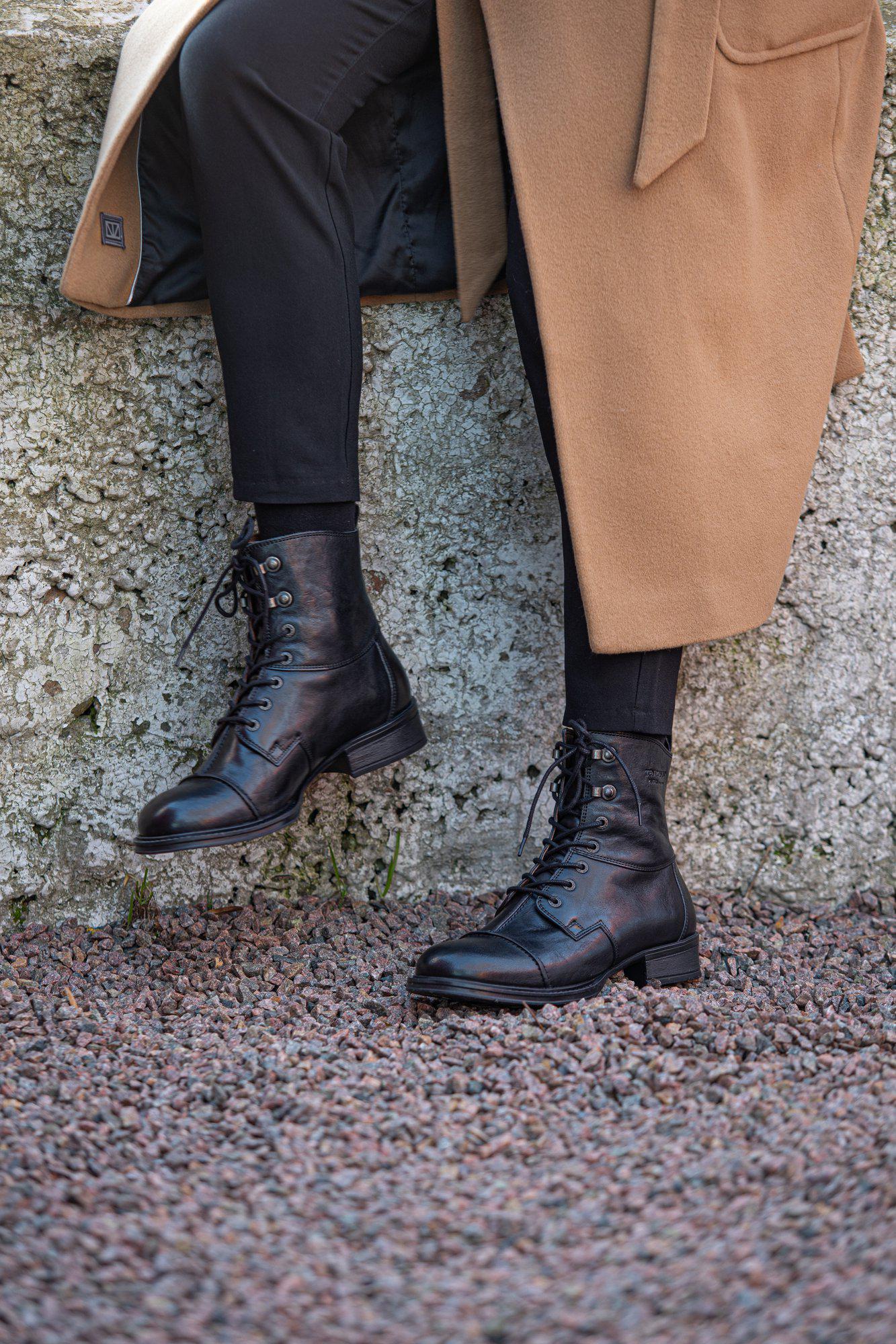 Entdecken Sie unsere klassische Pandora Schnürstiefelette, gefertigt aus hochwertigem, pflanzlich gegerbtem Leder und mit einem chromfreien Lederfutter ausgekleidet. Ihr zeitloses Design passt sowohl zu Hosen als auch zu Kleidern und bleibt Saison für Saison stilvoll. Bei richtiger Pflege werden Ihnen diese Stiefeletten lange Freude bereiten. Bitte beachten Sie, dass dieses elegante Modell nur Schnürsenkel hat und keinen Reißverschluss besitzt. Verleihen Sie Ihrem Outfit mit Pandora eine besondere Note! ACHTUNG! Kein Reißverschluss.
