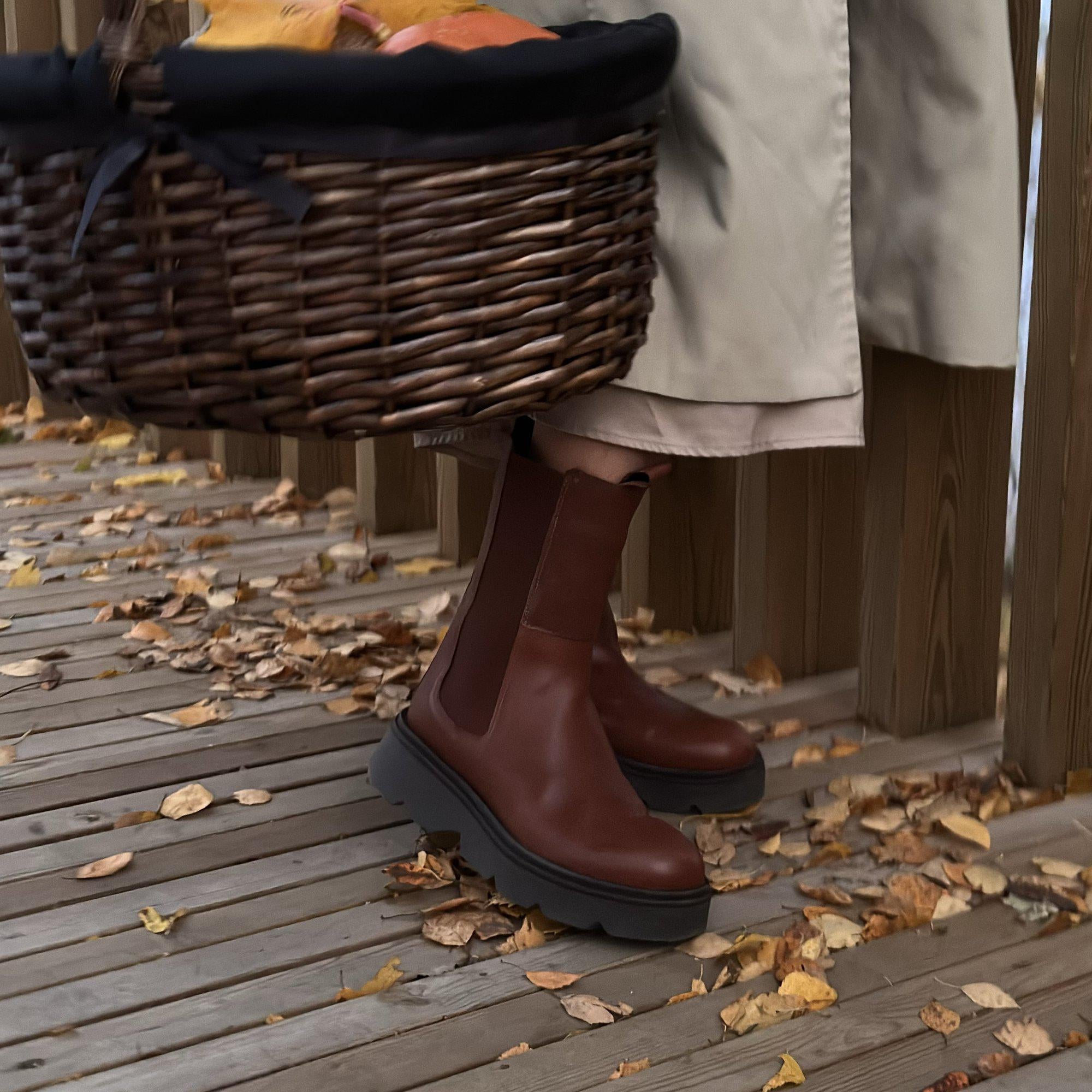 Karin ist ein hoch geschnittener Chelsea Boot – gefertigt aus weichem, pflanzlich gegerbtem, chromfreiem Leder. Das hohe Schaftdesign verleiht dem Schuh eine elegante, klare Linie und macht ihn leicht mit verschiedenen Outfits zu kombinieren. Innen sorgt ein Futter aus GRS-zertifiziertem, recyceltem Fleece für angenehme Wärme und hohen Tragekomfort an kühleren Tagen. Die robuste Sohle sorgt für Stabilität und macht Karin zu einer bequemen Wahl für Winterspaziergänge. Die elastischen Einsätze an den Seiten erleichtern das An- und Ausziehen, und die zeitlose Form lässt sich vielseitig kombinieren – ob zu Jeans, Leggings oder Kleid. Karin ist ein stilvoller Winterboot mit Funktion, Komfort und nachhaltigen Materialien in jedem Detail.