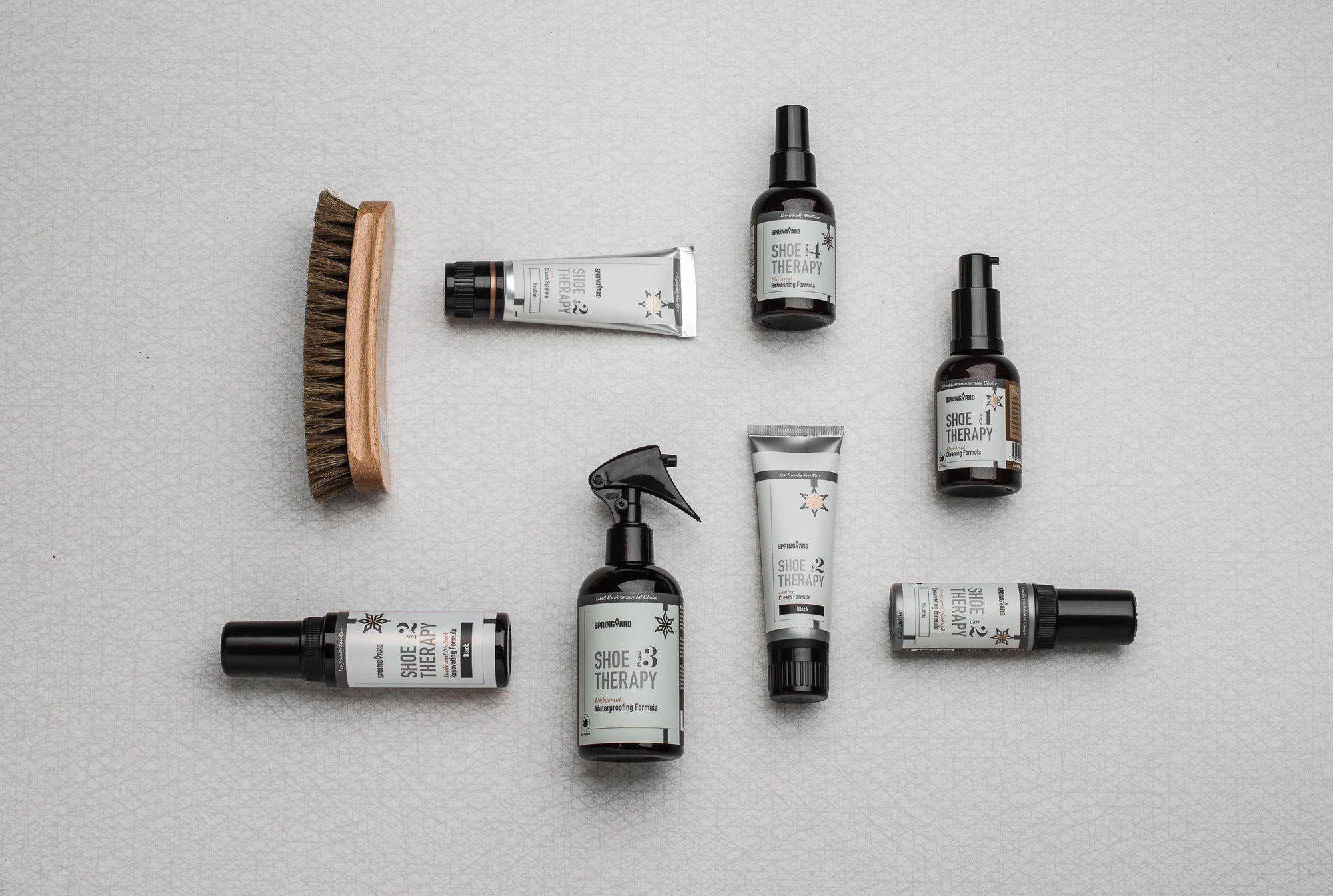 The first step, and very important, in shoe care is to clean the shoes . Here is a lathering cleanser. Effective against ingrained dirt and salt stains. Maintains the properties of the leather. Developed for minimum environmental impact. . Water-based formulation marked with Good Environmental Choice. Labeled with the Swedish Society for Nature Conservation (SSNC) and their eco-label "Good Environmental Choice" This is step 1 in the shoe care ritual. Size: 120 ML - Made in USA - Table of Contents: Water, proprietary plant based surfactant and fragrance. Coconut & Jojoba Oils. Lanolin. Perfume - waterbased natural fragrance - plant based (lemon peel). Ultraviolet brightener.
