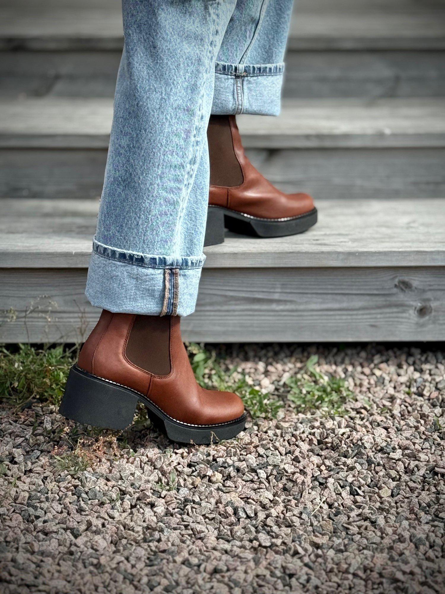 Selma is a modern chelsea boot with a solid block heel and soft lines – the perfect balance of comfort, style and durability. Crafted from vegetable-tanned, chrome-free leather, the material is both soft and flexible, adapting beautifully over time. Inside, the boot features a lining of GRS-certified recycled fleece that gives a soft, comfortable feel. A lightweight TR heel ensures stability and all-day wearability without compromising on style. Thanks to the elastic side panels, Selma is easy to slip on and off while still providing a secure fit. Equally stylish at work or at a party, Selma pairs effortlessly with jeans, dresses or tailored trousers. With its modern look, comfortable fit and sustainable materials, it’s a versatile heeled boot you’ll reach for season after season.