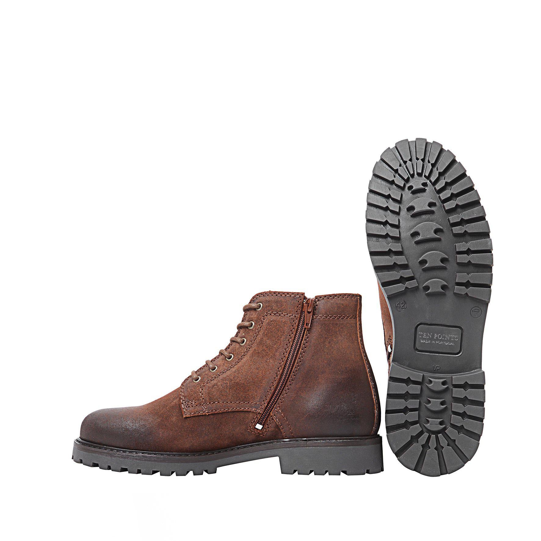Stig är en rustik och stilren snörkänga tillverkad i vaxad och oljad mocka (kromfri) som ger skon en vacker vintagekänsla. Den matta ytan och det slitstarka materialet ger karaktär, samtidigt som kängan är både hållbar och bekväm att bära. Fodret är i återvunnen fleece, vilket ger en mjuk och värmande känsla – perfekt för kyligare dagar. Innersulan i memory foam formar sig efter foten och ger skön dämpning vid varje steg. Stig är ett utmärkt val för dig som söker en känga med både funktion och stil. Den passar lika bra till vardags som till mer uppklädda tillfällen, och matchas snyggt med jeans, ullbyxor eller chinos. Med sin klassiska snörning, hållbara material och tidlösa design är Stig en favorit för dig som vill ha en bekväm och genomtänkt känga för många säsonger framåt.